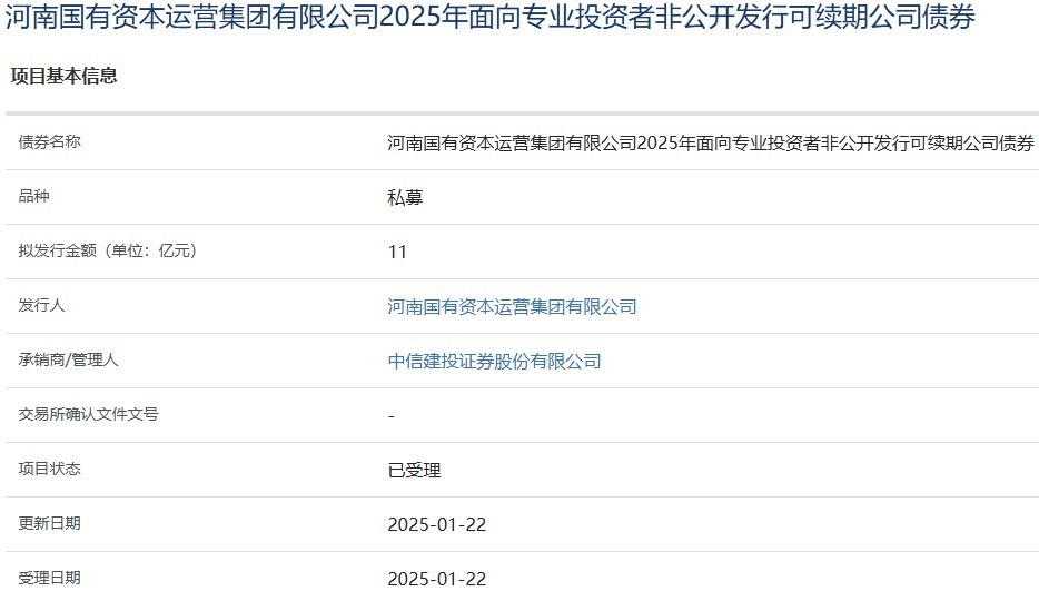 河南资本集团拟发行11亿元可续期公司债,获上交所受理